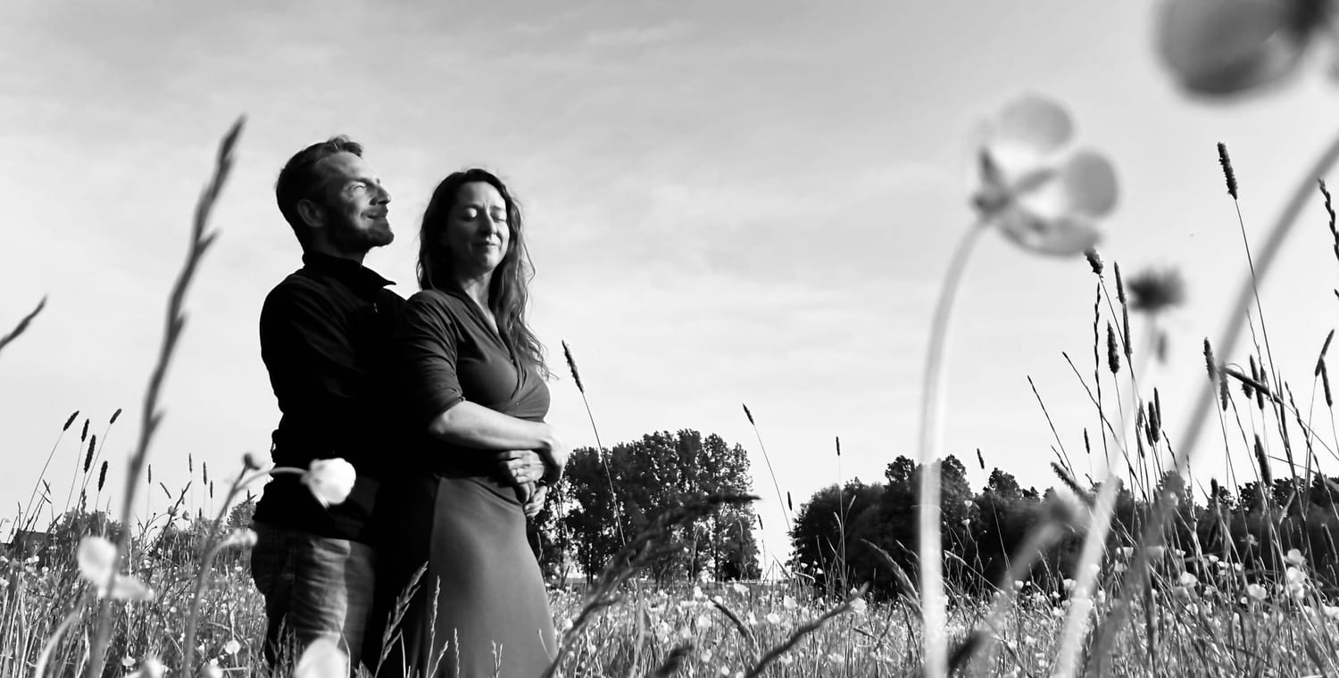 We vonden elkaar na ieder afzonderlijk een pad te hebben gelopen waarbij loslaten en terug rechtop komen een rode draad vormden. Vandaag leven we het leven met een grote dankbaarheid. Elke dag opnieuw ervaren we dat liefde de grootste kracht en heler is. Deze kracht benutten we ook bewust in ons werk. Via een luisterend oor, betekenisvolle rituelen, bezielde teksten en verhalen, de kracht van een veilige groep, helend schrijven en authentiek klank geven aan wat gehoord wil worden.
